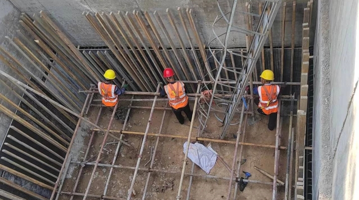 五泉下廣場提升改造項(xiàng)目部,根據(jù)施工現(xiàn)場情況,增加了3臺(tái)挖掘機(jī)、2臺(tái)鉆機(jī)、60名勞務(wù)人員,采取見縫插針、穿插作業(yè)的工作模式,晝夜奮戰(zhàn)在施工現(xiàn)場。截至目前完成了基坑支護(hù)工程、抗浮錨桿610根、土方開挖外運(yùn)170790m3、基坑清底5500㎡、第四層換撐梁315m、集水盲溝320m、筏板墊層3830㎡、筏板防水3425㎡、1#塔吊安裝及1區(qū)筏板澆筑施工。