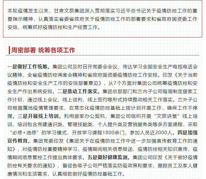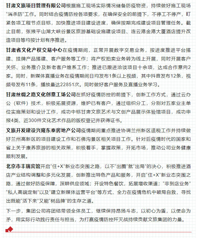 沖鋒在前抗疫情 守土盡責(zé)穩(wěn)經(jīng)營——甘肅文旅集團(tuán)抗疫工作紀(jì)實