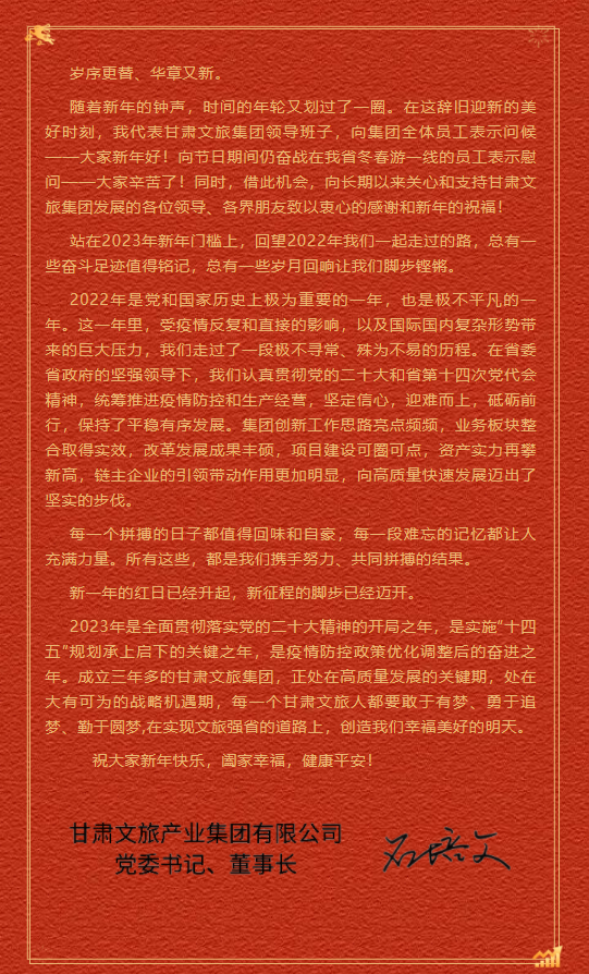 甘肅文旅集團二〇二三年新年賀詞