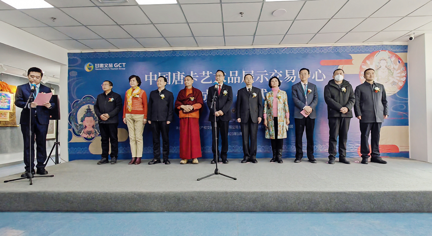 1月11日,中國唐卡藝術(shù)品展示交易中心在蘭州成立。甘肅文旅集團(tuán)黨委副書記、總經(jīng)理?xiàng)钣詈?,甘肅省文旅廳一級巡視員楊建仁,中國木偶藝術(shù)劇院院長趙永莊,原甘肅文旅集團(tuán)黨委委員、紀(jì)檢監(jiān)察專員李存旺,甘肅文旅集團(tuán)黨委委員、副總經(jīng)理朱銀鴻,省民委二級巡視員吳燕妮,蘭州市委宣傳部常務(wù)副部長王耀宏和市民宗委副主任陳學(xué)貴,國家級唐卡非遺代表性傳承人,甘肅文旅集團(tuán)、甘肅文交中心、甘南州文旅交建集團(tuán)主要負(fù)責(zé)人,及有關(guān)方面特邀嘉賓參加了成立儀式。由甘肅文交中心舉辦的唐卡藝術(shù)精品展于當(dāng)日同時(shí)開展。