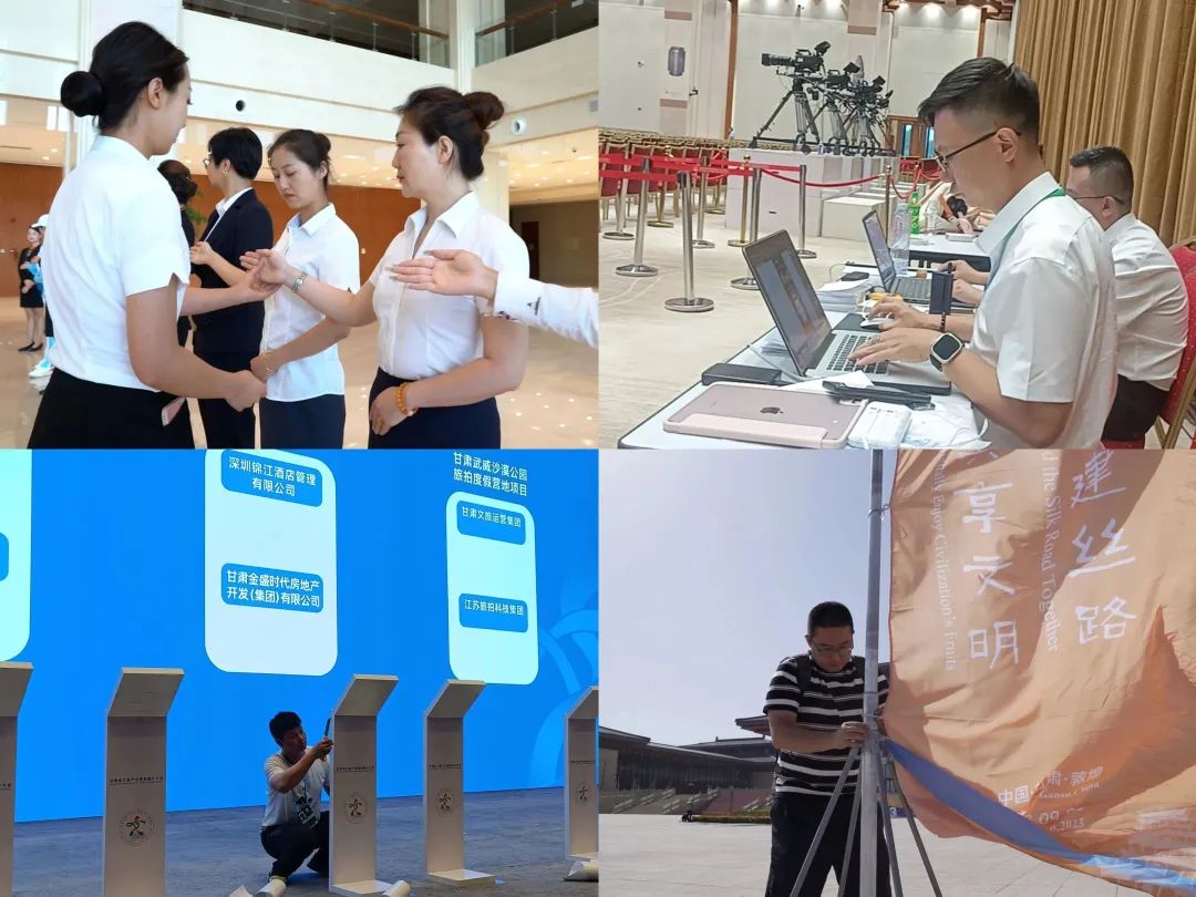 在節(jié)會(huì)籌備過程中,集團(tuán)公司旗下絲路文博公司全體成員在大會(huì)前20多天備戰(zhàn)一線,與敦煌文博會(huì)執(zhí)委會(huì)辦公室及各方保持密切溝通和協(xié)作,將精益求精的工匠精神貫穿工作始終,竭盡全力做好各項(xiàng)工作。在節(jié)會(huì)前夕,他們更是通宵達(dá)旦,累了就在會(huì)場打地鋪,醒了續(xù)杯濃茶繼續(xù)戰(zhàn)斗,不斷對(duì)現(xiàn)場布置、設(shè)備功能、應(yīng)急方案等細(xì)節(jié)方面進(jìn)行優(yōu)化,確保了節(jié)會(huì)的順利舉辦。
