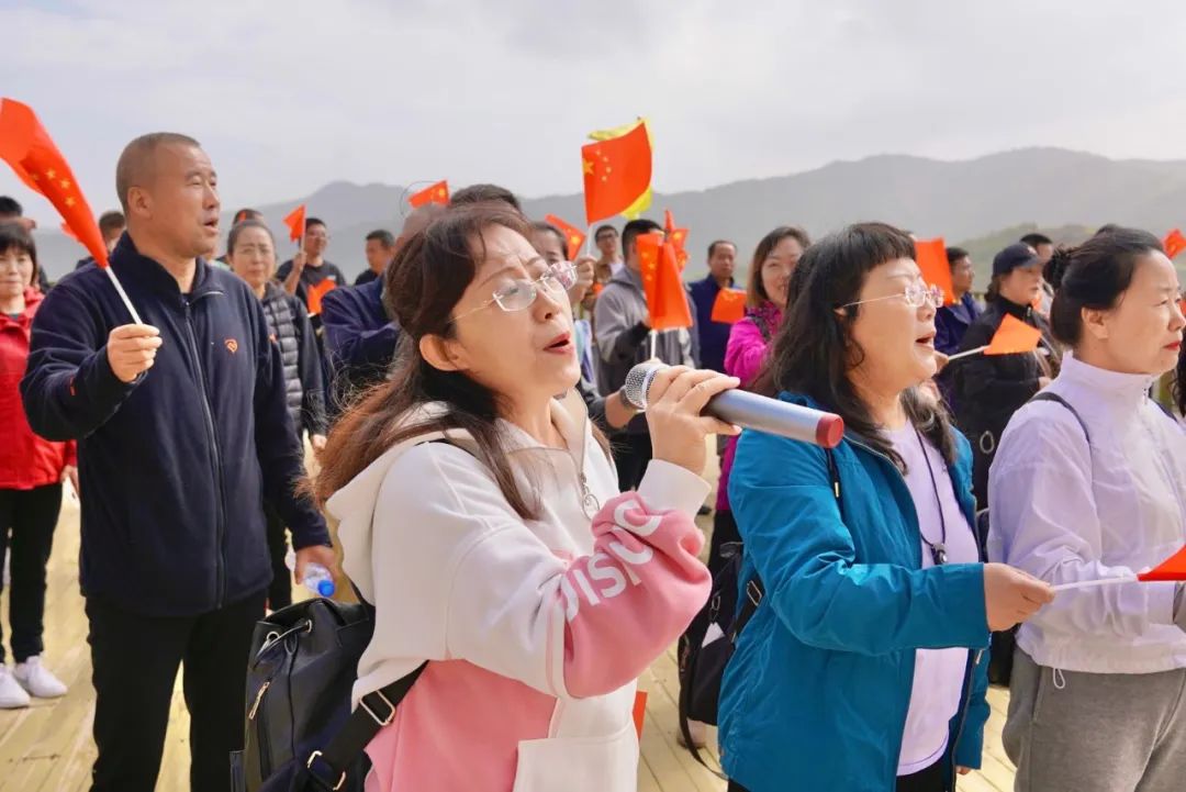 活動中,大家神采飛揚、身姿矯健,邁著有力的步伐沿著云頂山步道向著云頂廣場前進。一路上,大家結(jié)伴而行、歡聲笑語,欣賞著秋日的美景,每個人的臉上都洋溢著笑容,享受著健康運動帶來的身心愉悅。隨后,還開展了《我和我的祖國》《歌唱祖國》唱歌快閃活動。